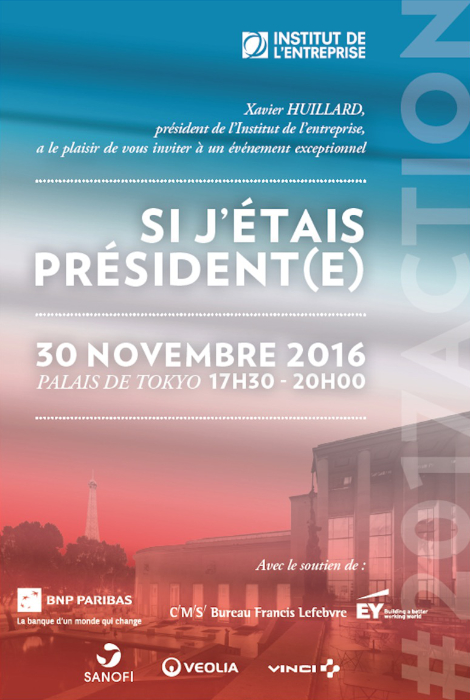 Le 30 novembre dernier au Palais de Tokyo, l’Institut de l’entreprise a réuni 12 intervenants issus de la société civile qui ont exposé chacun, en 7 minutes, une idée de réforme pour la France. Plus de 300 personnes se sont réunies pour découvrir les propositions de ces Président(e)s d'un soir.