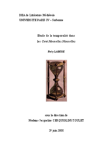 Étude de la temporalité dans les « Cent Nouvelles Nouvelles ».Mémoire de DEA, Mondes anciens en médiévaux, Université Paris IV-Sorbonne.